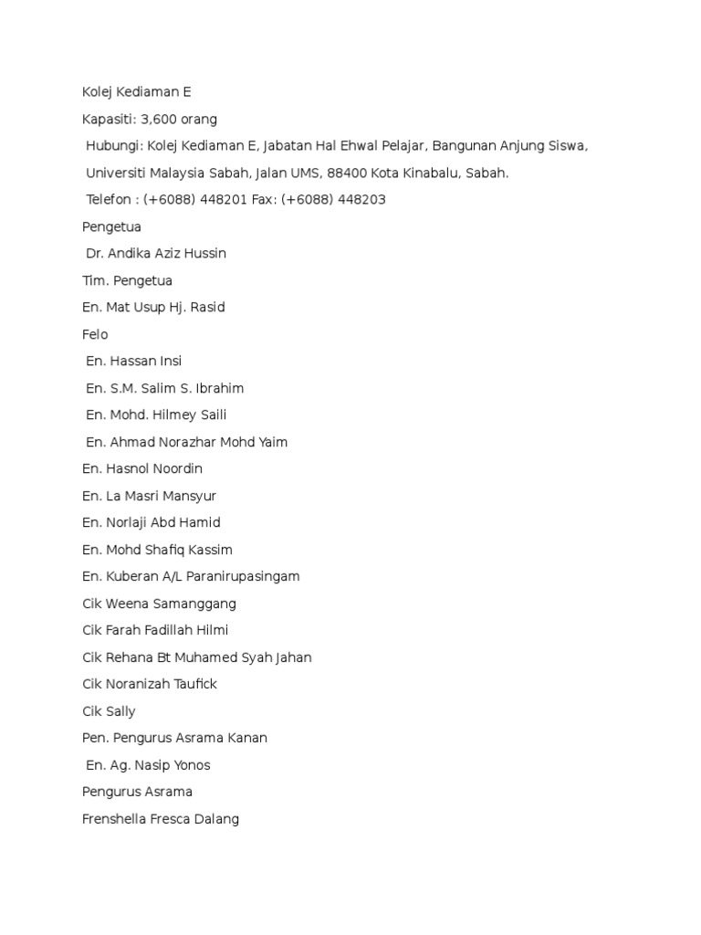 Kolej Kediaman E Ums / Kolej Kediaman E Ums Jayakan Open Day E / Sempena dengan sambutan pesta kaamatan 2015, pusat sukan telah menganjurkan karnival sukan antara kolej kediaman.. Pendaftaran kolej pelajar 2015 ums. Jalan sembulan, 88100 kota kinabalu, sabah, malaizija. Pelajar yang belajar di ums akan disediakan dengan suasana persekitaran pembelajaran yang sihat. Sabah, malaysia, southeast asia, asia. Kolej kediaman excellent universiti malaysia sabah ums official video montaj korporat.